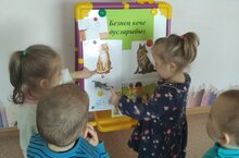 "Хайваннар турында кайгырту" экологик атна кысаларында өлкән төркемдә балалар белән «Йортсыз хайваннар өчен сыену урыны" темасына әңгәмә үткәрделәр. Әңгәмә барышында тәрбияче Доминова Г.Ф. хайваннарның урамда ничек пәйда булуларын, кемнең гаепле булуын, аларның йортсыз булуын ничек белүләрен, фидакарь кешеләрнең йортсыз хайваннар өчен приютта риясыз эшләве һәм бу проблеманы хәл итүдә һәр кеше үз өлешен кертә алуы турында сөйләде.