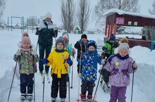 Воспитатель старшей группы Доминова Г.Ф. обучает детей ходьбе на лыжах. Ходьба на лыжах оказывает большое влияние на физическое развитие и закалку организма ребенка. Лыжные занятия оказывают благоприятное влияние на формирование осанки, способствуют развитию быстроты, выносливости, координации.