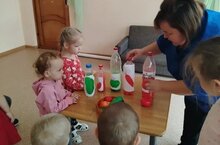 С целью вовлечения детей с младших лет в элементарную исследовательскую деятельность по изучению цветов, свойства воды, в младшей группе провели игру-эксперимент. Данная игра способствует развитию познавательного интереса, наблюдательности, способность сравнивать, умение слушать взрослого и точно выполнять словесные указания.