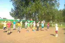 "Табигать балалары" лагерына йөрүче балалар көндәлек иртәнге зарядка ясыйлар.