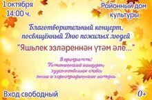 Өлкәннәр көне уңаеннан 1 октябрь көнне 14.00 тә район мәдәният йортында бәйрәм концерты була . Барыгызны да әлеге чарага чакырабыз.