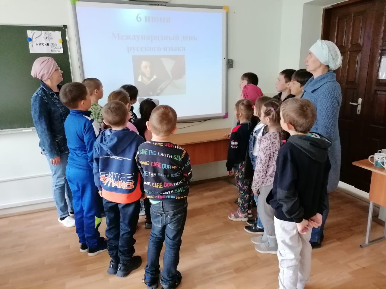 6 июня в лагере прошло мероприятие, посвящённое «Дню Русского языка.» Дети пришкольного лагеря углубили свои знания о богатстве русского языка, познакомились с творчеством известного поэта А.С.Пушкина.