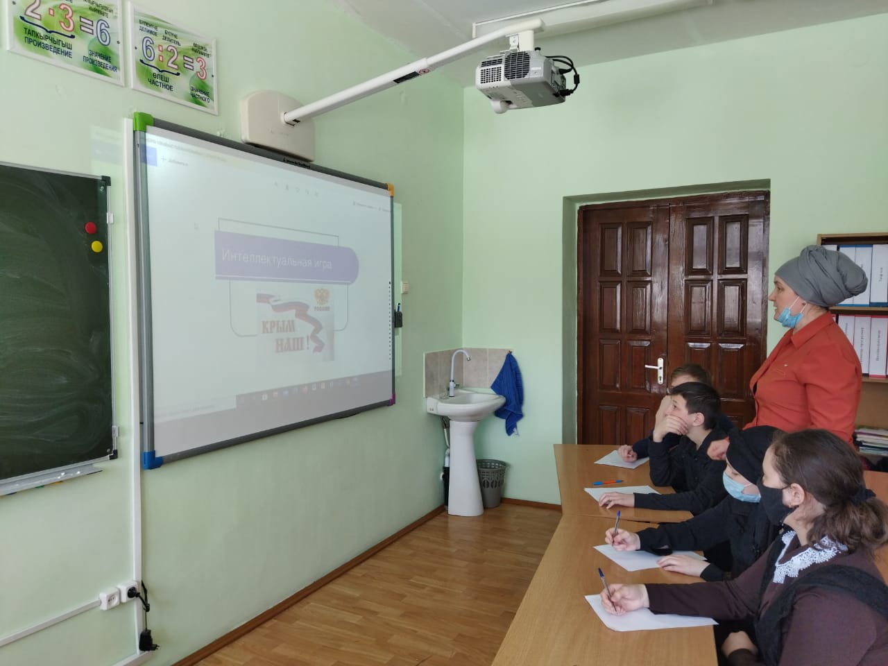 “Крым язы” акциясе кысаларында 9 нчы сыйныф укучылары Крымга багышланган фильм карадылар. “Безнең Крым”- дип аталган интеллектуаль викторинада катнаштылар.