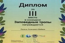 Русское Географическое Общество и Министерство экологии и природных рисурсов РТ провели республиканский конкурс "Заповедными тропами". Учитель географии нашей школы Набиев Расил Газизович участвовал в конкурсе и занял 3 место. Набиева Р.Г. поздравляем с победой и желаем дальнейших успехов!