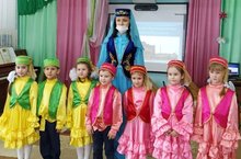 В нашем детском саду воспитанниками подготовительной к школе группы (воспитатели Шайхиева Р.В., Зайнуллина Г.Г., Фазлыева Э.А.) была проведена постановка татарской народной сказки "Кому подарок?" на татарском языке с приглашением представителей Кукморского краеведческого музея.