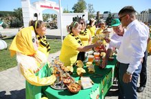 Сегодня на Комсомольской площади г.Кукмор прошёл праздник "Медово-яблочный спас". Нашим детским садом была организована тематическая выставка-продажа продукции, которую жители и гости города могли попробовать и оценить.