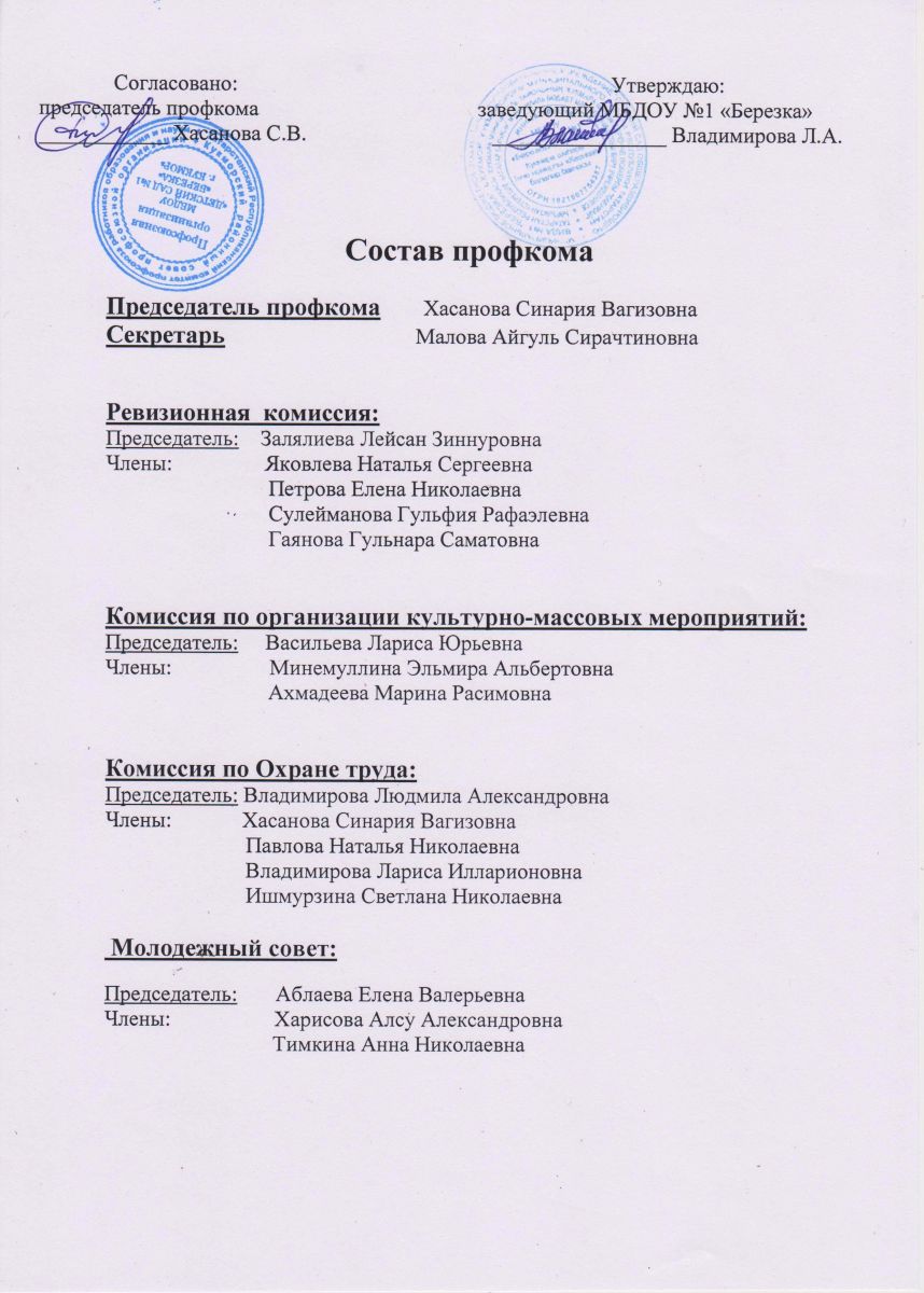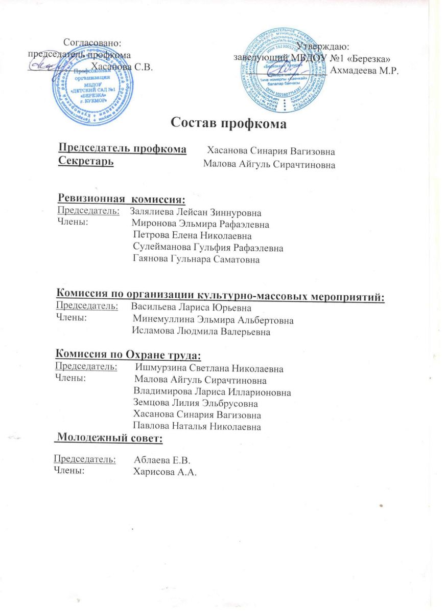 Председатель профсоюзного комитета - Хасанова Синария Вагизовна