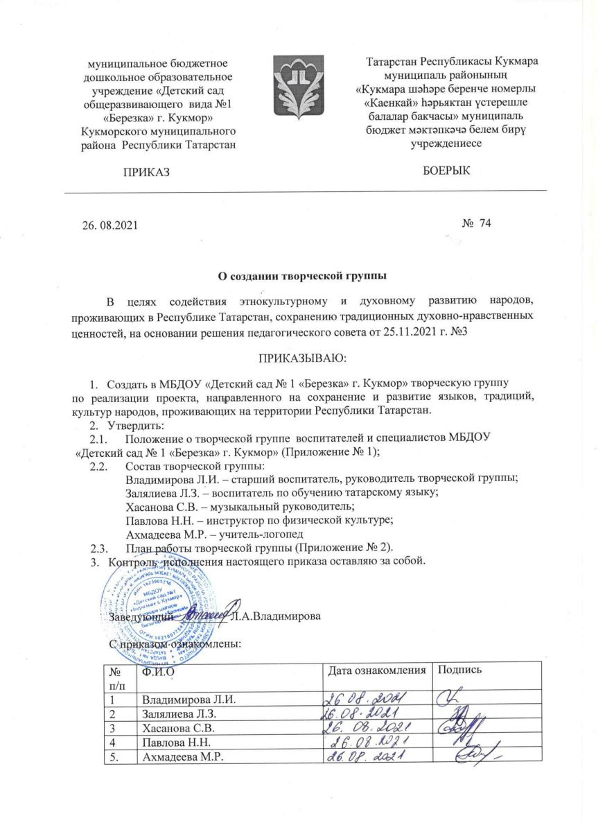 Приказ о создании творческой группы