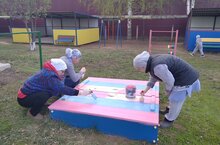 В рамках санитарно-экологического двухмесячника и республиканской акции «ЭКОВЕСНА 2023» проведен ремонт игрового оборудования детских площадок. С помощью родителей сделаны крышки для песочниц и покрашены в яркие цвета.