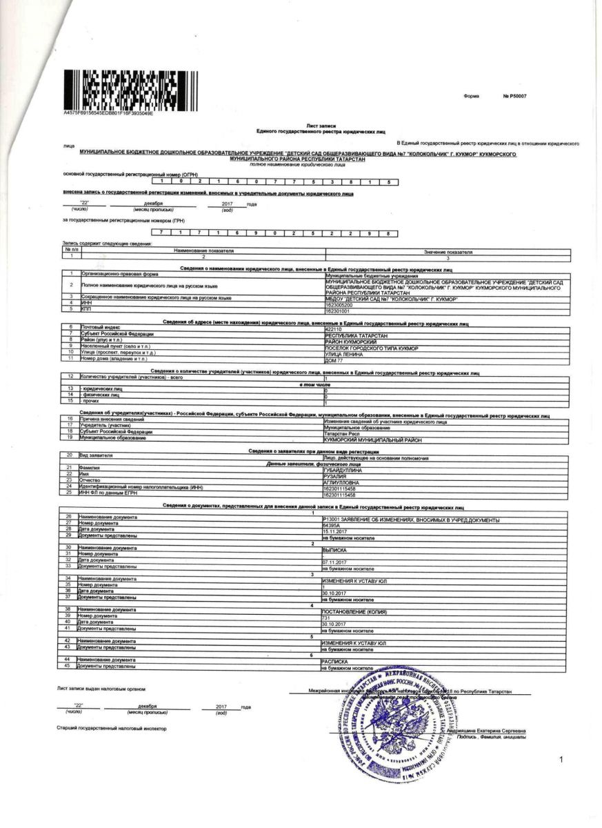 Короткое название: МБДОУ «Детский сад общеразвивающего вида №7 «Колокольчик» г. Кукмор»