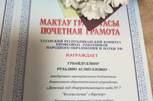 2019 елның 11-12 ноябрендә Казан шәһәрендә «Балалар бакчасында һөнәри юнәлеш бирү эшенең иң яхшы проекты» республика конкурсының финалы узды. Татарстан Республикасы мәктәпкәчә белем бирү оешмаларының 20 педагогы конкурсның читтән торып уздырылган этабы нәтиҗәләре буенча 131 укучы арасында сайлап алынган иң яхшы проектларны тәкъдим итте. Алар арасында безнең белем бирү учреждениесе педагоглары да бар: тәрбияче Исмагилова Г. Р. һәм өлкән тәрбияче Галиева Л. М.
