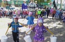 Услышав из дома мотивы знакомых песен под сопровождение баяна люди выходили, давали подарки для Сабантуя и пускались в пляс вместе с сотрудниками нашего детского сада, исполняя песни на русском,татарском и удмуртском языках. -