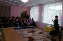 На базе нашего детского сада прошел районный семинар-практикум для воспитателей дошкольных образовательных учреждений «Современные образовательные технологии и методики воспитательно-образовательной системе воспитателя детского сада в услови-ях реализации ФГОС ДО». Семинар начался с выступления Файзутдиновой Р. С.методиста по дошкольному воспитанию Управления образования Исполкома Кукморского муниципального района РТ, делее старший воспитатель Гадиева Л.М. продемонстрировала видеоролик Егоровой О.А. участника республиканского конкурса "Я говорю и работаю по-татарски - 2015".