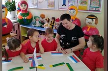 В старшей группе Фаляхова М.М. провела беседу о флаге Республики Татарстан и далее дети закрепили полученные знания раскрасив флаг.