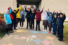 "Көзге игелек атнасы" кысаларында 5 нче сыйныф укучылары асфальтта "Якты шәһәр"дип исемләнгән рәсем акциясендә катнаштылар