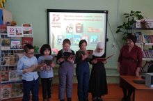 III Бөтенроссия "Көчле рухлылар: разведчиклар һәм партизаннар турында китаплар укыйбыз" акциясе һәм Җиңүнең 75 еллыгы уңаеннан балалар китапханәсе хезмәткәре Гөлфия Хафизова Ч.Т. Айтматов исемендәге 1 нче гимназиянең 3б сыйныф укучылары өчен “Батырлык һәм дан турында” дип исемләнгән батырлык сәгате үткәрде. Китапханәче балаларга Бөек Ватан сугышы, партизаннар, аларның батырлыклары турында сөйләде. Балалар "Салют, пионерия!» китабыннан Лара Михеенко, Зина Портнова һәм Марат Казей турында өзекләр тыңлады. Соңыннан алар А.Твардовскийның «Рассказ танкиста» шигырен укыды, видеоклип карады. Чарага «Страницы памяти и славы» дигән китап күргәзмәсе оештырылды. Геройларны бер минут тынлык белән искә алдылар.