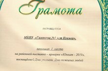 Укытучылар һәм өлкәннәр көненә багышланган Район күргәзмә “Юннат-2019” ярминкәсендә катнашып безнең гимназия 1 урынны яулады.Котлыйбыз!