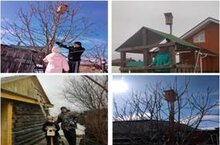 В рамках акции "Эковесна" родители вместе с детьми возводили птичьи гнезда на опорах домов. Вокруг гнезд были замечены птицы, выбирающие гнездо.