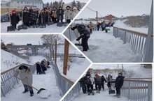 К уборке снега набережной реки Нурминка г. Кукмор присоединились волонтёры - учащиеся 8а, 8б, 9б классов нашей гимназии. Волонтёры убрали снег с лестничных подъёмов и спусков набережной г. Кукмор, тем самым обеспечили свободный проход по ней.