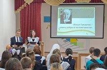 В гимназии 8 сентября состоялся литературный вечер, посвященный 100-летию выдающегося советского аварского и российского поэта, публициста и политического деятеля, народного поэта Дагестанской АССР (1959), Героя Социалистического Труда (1974), лауреата Ленинской (1963) и Сталинской премии третьей степени (1952) Расула Гамзатова (1923-2003). Ведущие музыкально-поэтической программы, учащиеся 10 класса МиннегалиевРасул ,ГазизоваДилия открыли вечер словами об эстетической значимости творчества Расула Гамзатова сегодня. Они рассказали собравшимся о большом количестве любимых песен, созданных на стихи поэта, а также о невозможности полностью осознать и по достоинству оценить творчество дагестанского гения, ввиду нашего незнания аварского языка, на котором создавал свои стихотворные шедевры Расул Гамзатов. Чтецы, учащиеся 7-8 классов, выступили самыми известными стихами юбиляра, напомнив о вечных народных истинах: любви к народу и жизни.