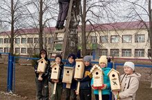 Апрель – «птичий» месяц, время массового прилёта птиц с зимовок на гнездование. Каждый год мы проводим в школе акцию "Сделаем птицам домики". Ученики совместно с родителями делают скворечники. Эти скворечники развешиваем на деревьях. И с нетерпением ждём, когда скворцы появятся в наших скворечниках. #КомандаВоспитания#Татарстан#Кукмор