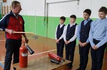 В рамках месячника по патриотическому воспитанию в преддверии дня рождения огнетушителя, который отмечается 7 февраля, учитель ОБЗР Закиров Ф.Ф. показал и рассказал, как пользоваться огнетушителем учащимся 7 класса, включающие в себя теоретическую часть о создании и практическом применении огнетушителя. Кроме того, учащиеся приняли участие в викторине, отгадывали загадки по пожарной безопасности. В конце урока учитель напомнил детям о правилах пожарной безопасности.