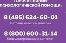 В Федеральном координационном центре по обеспечению психологической службы в системе образования Российской Федерации круглосуточно работает Горячая линия кризисной психологической помощи, обратиться в которую можно по номеру 8-800-600-31-14