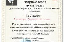 25 нче ноябрьдә Кукмаранын "Ромашка" садигында "Шэвәлидә кунакта"межрегиональ конкурс булды. Илдан Шәүкәт Галиевнын "Борау"шигыре белән 2 урынга лаек булды. Котлыйбыз Илданны????