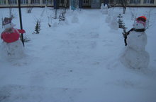 Сегодня завершилось строительство снежного городка. Территория образовательного учреждения преобразилась, стала праздничной: яркие фигуры из снега украсили двор. Общее дело сплотило ребят, ученики старших классов помогали младшим. Было очень весело.