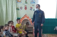 Сегодня к нам прибыл старший инспектор районного отдела пожарного надзора Каримуллин Фархад Фаридович. Он провел с детьми старшей группы инструктаж по пожарной безопасности./ Бүген безгә районның Янгын күзәтчелеге бүлегенең өлкән инспекторы Каримуллин Фархад Фарид улы килде. Ул зурлар төркеме балалары белән янгын куркынычсызлыгы чаралары буенча инструктаж үткәрде.