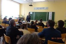 29 и 30 ноября в школе прошла встреча с ведущим специалистом по профилактике семейного неблагополучия и правонарушений среди несовершеннолетних Габдуллиной Айгуль Ильдаровной. Она провела беседу о правилах дорожного движения, пожарной безопасности, терроризме и экстремизме, правонарушений среди несовершеннолетних, наркомании, мошенничестве и напомнила закон РТ № 71.