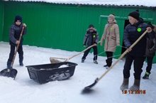 Отряд юнармейцев помог ветерану ВОВ Платонову Петру в очистке двора от снега.