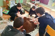 Холодная и снежная погода в начале мая внесла свои коррективы, но экологическая работа в нашей школе не прекращается. Под руководством учителя химии и биологии Владимировой Т.В. все дружно готовят рассаду цветов и овощей.Экояз