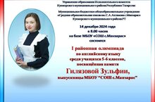14 декабря на базе нашей школы прошла I районная олимпиада по английскому языку среди учащихся 5-6 классов, посвященная памяти Гилязовой Зульфии, выпускницы МБОУ "СОШ с. Манзарас". 16.12.2024