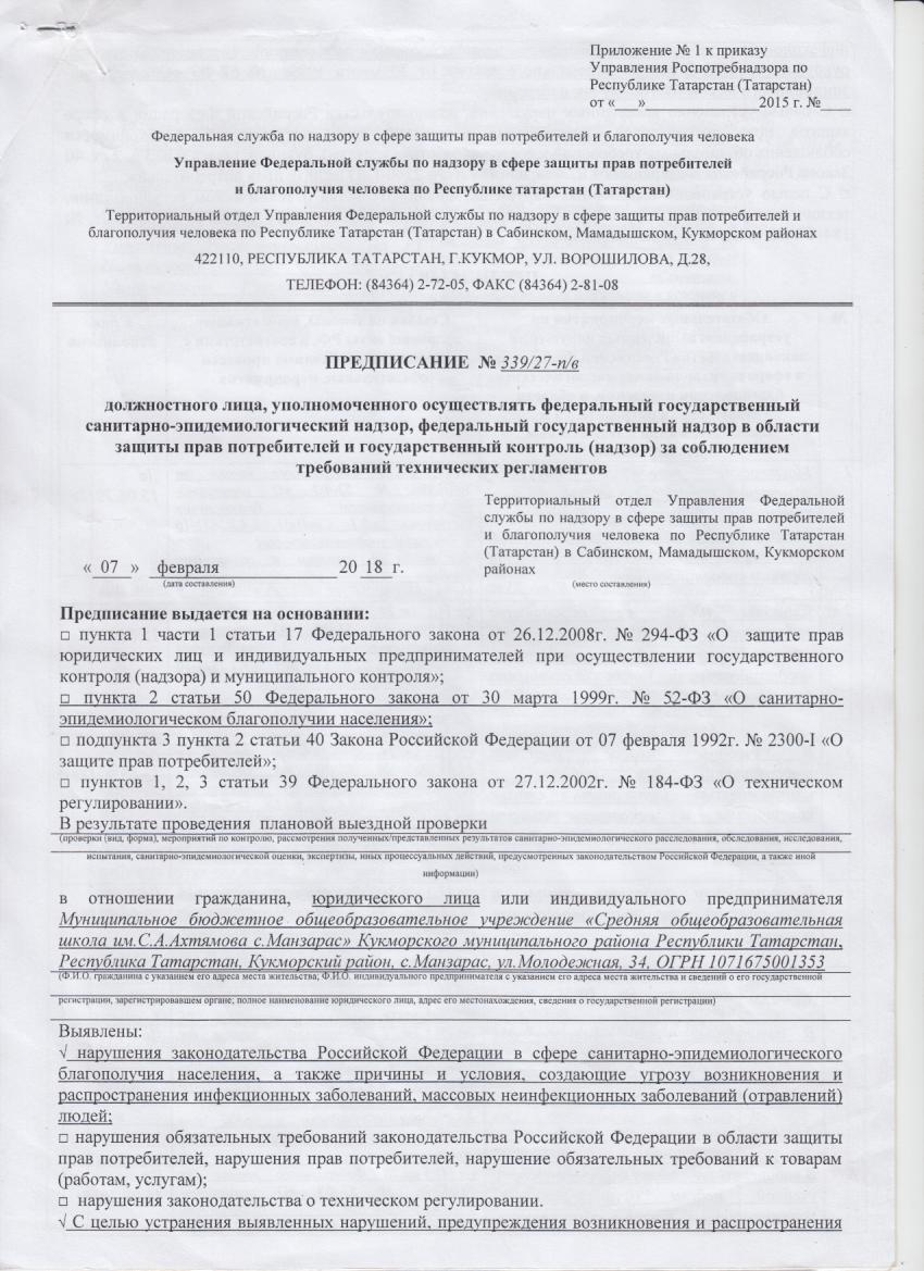 Предписания органов, осуществляющих государственный контроль в сфере образования