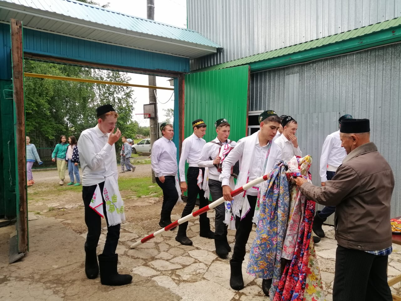 8-й день лагеря - день "Открытий" - дети посвятили тому, чтобы своими глазами увидеть традиции нашего народа. Были сыграны народные игры, самое интересное - участие в празднике собирания подарков на Сабантуй - "Сөрән" в деревне Кошкино. Детям он очень понравился. Ребята увидели добрые традиции нашего народа с песнями и танцами, гостеприимство татарского народа, сняли красивые фотографии.
