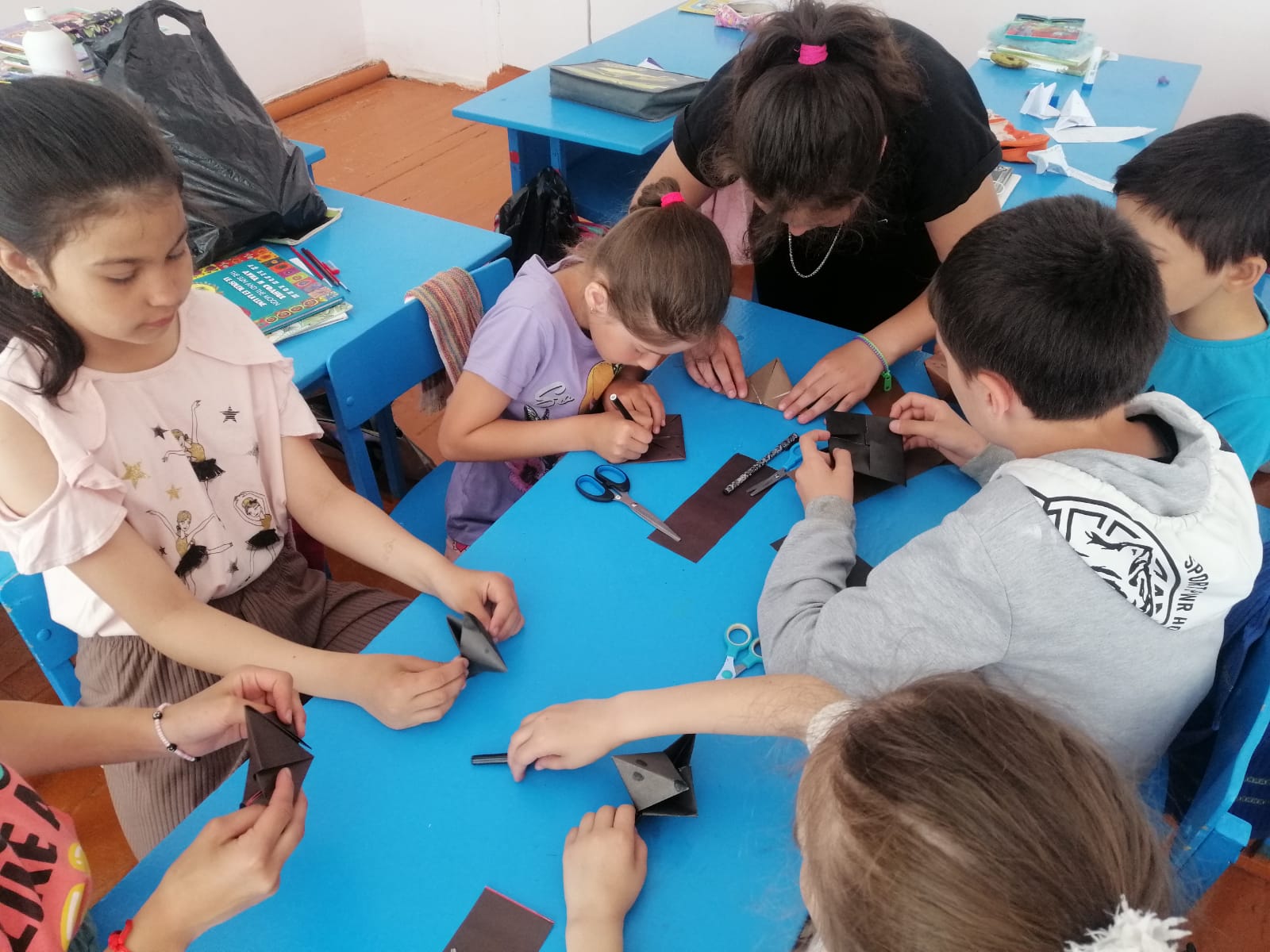 11-ый день в прошел под девизом «День умелых ручек». Провели беседу про мастеров нашего села. В нашей сельской местности живут люди, которые творят чудеса, изготовливают много интересного и красивого. Есть вышивальчицы, мастера по дереву, по металлу. Дети любят оригами. Много интересного сумели сделать из бумаги, показывали свои поделки, делились секретом при изготовлении поделок из бумаги. Каждый отряд делал совместную поделку и защищал его. Игра на свежем воздухе "Фестиваль игровых шаров» прошел очень увлекательно.