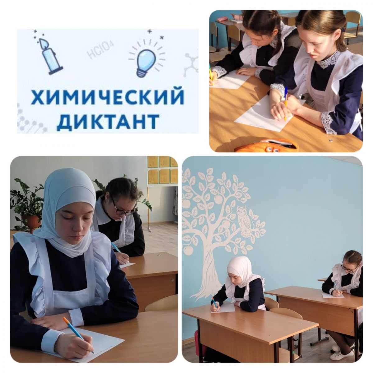 Химия атналыгы кысаларында 10-11 сыйныф укучылары Химик диктант яздылар.