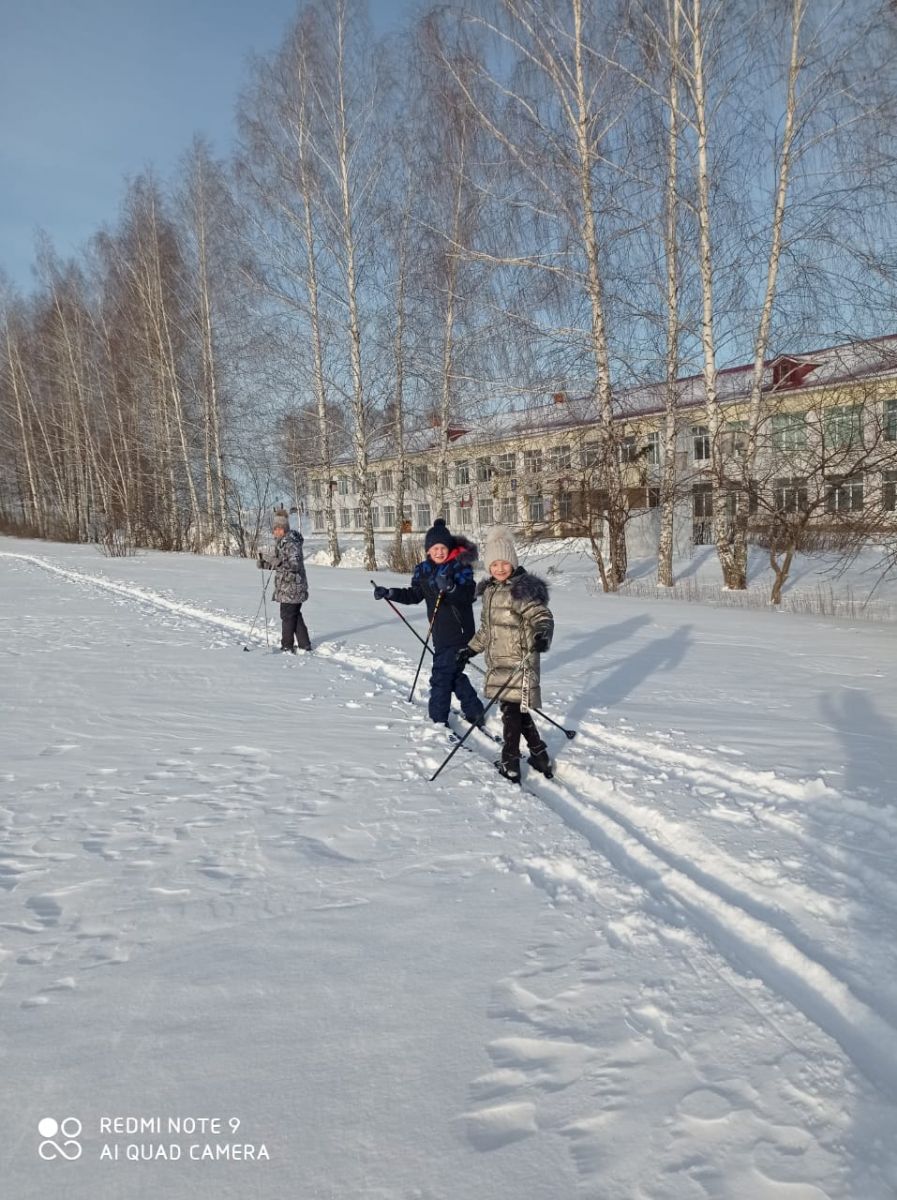 В рамках недели начальных классов учитель физкультуры Хамидуллин Р. Р. организовал катание на лыжах под открытым небом.