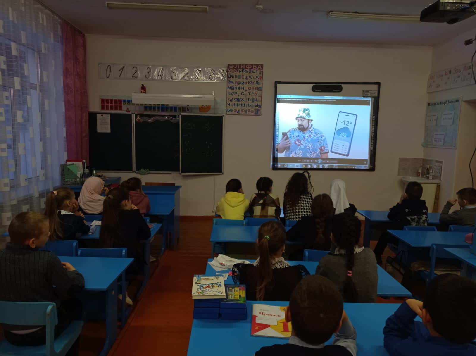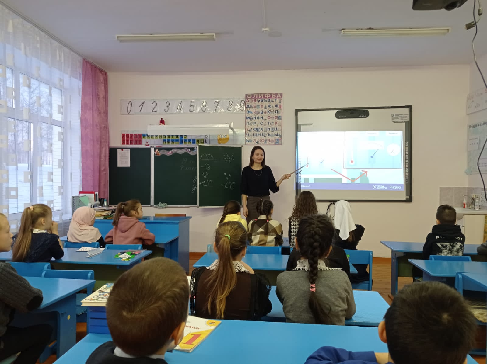"Саннар дәресе" проектын һәм башлангыч сыйныфлар атналыгы планын тормышка ашыру кысаларында Хәмидуллина Г.М. "Һава торышын тәкъдим итүче технологияләр" темасына дәрес үткәрде.