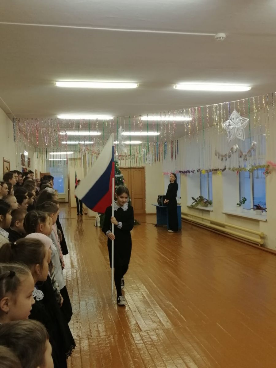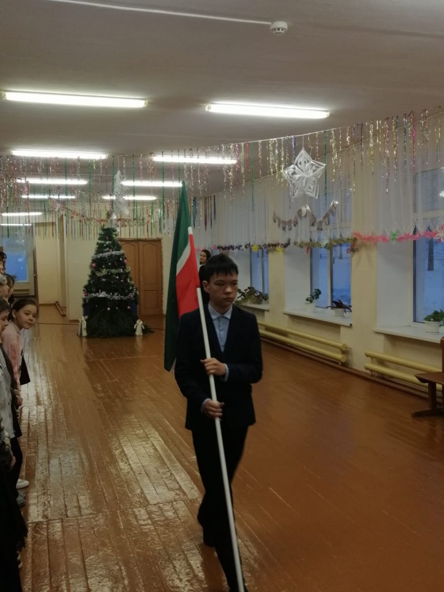 Дәүләт флагларын күтәрү вазыйфасы 7 сыйныф укучылары Самигуллина Нәргизә һәм Шакиров Рифатка бирелде. Алар мәктәбебезнең алдынгы укучылары, олимпиадаларында актив катнашучылар.