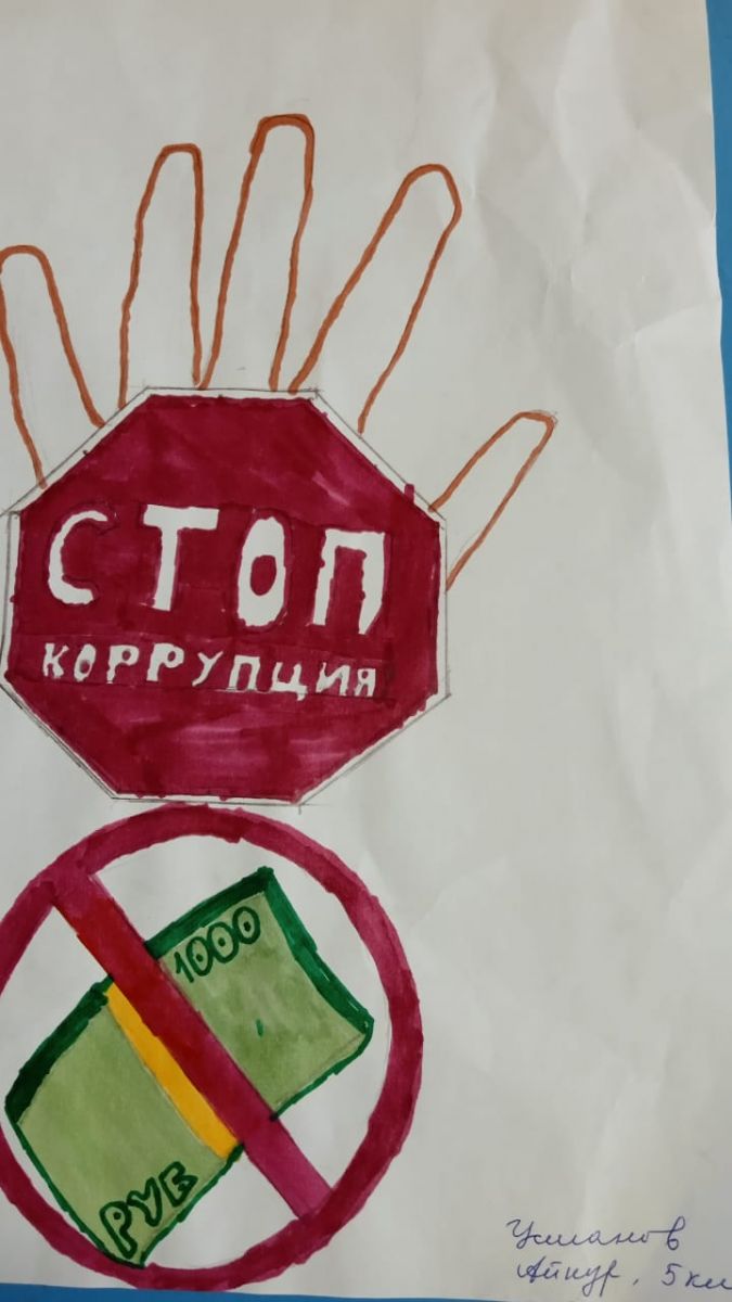 В рамках реализации плана, разработанного ко Дню борьбы с коррупцией, провели конкурс рисунков "Коррупция - стоп!". Также были проведены классные часы по темам "Что я знаю про коррупцию?".