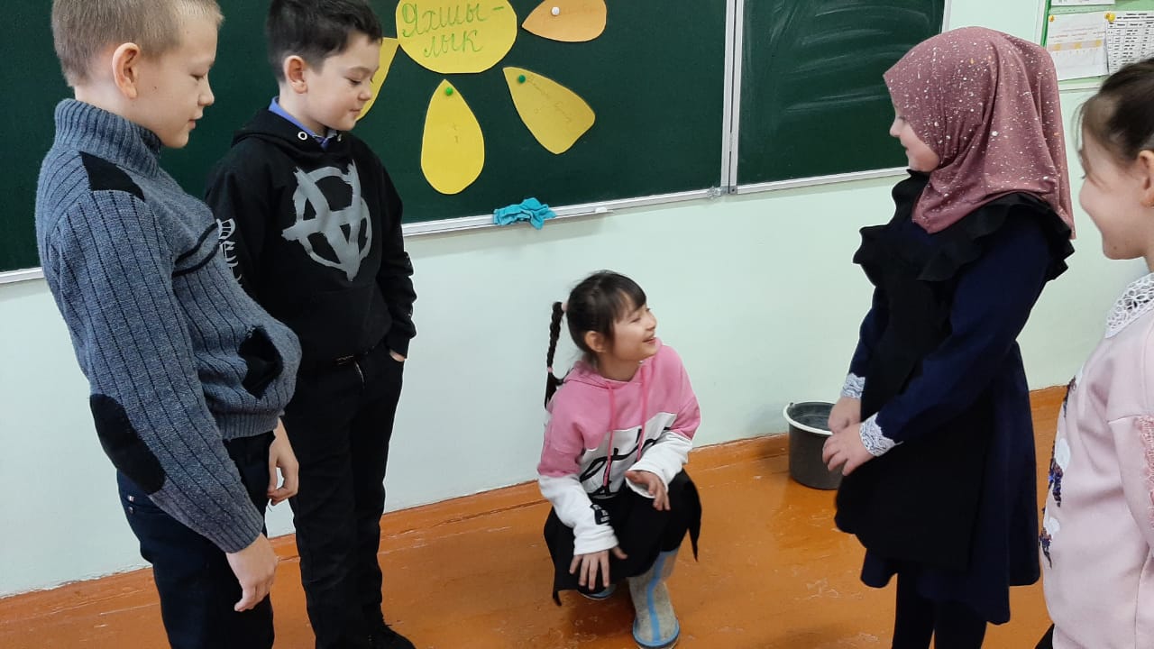В 4 классе руководитель Шарипова Д. И. провела воспитательный час в рамках Декады инвалидов. Они слушали песню известной российской певицы Дианы Гурцкой. Ознакомились с ее жизнедеятельностью и творчеством. Играли в разные игры. Была проведена беседа о "Мечтах". Они пришел к выводу, что независимо от того, инвалид он или здоровый человек, каждый может получить образование, заниматься любимым делом.