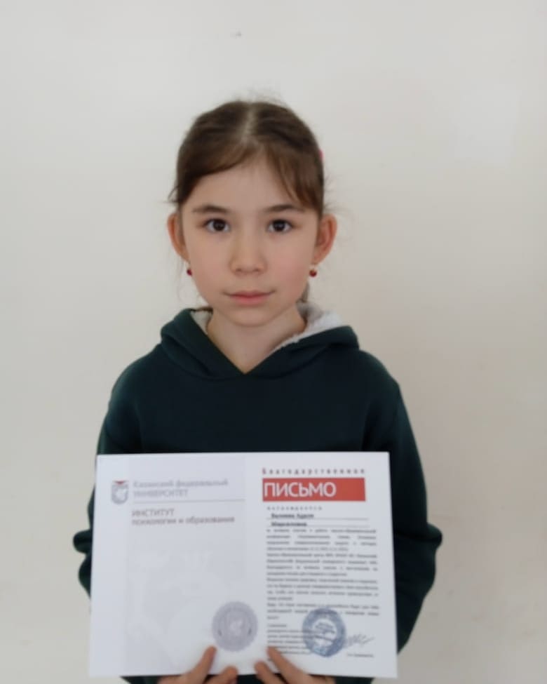 Рәсәйкүләмендә үткәрелгән "Фея знаний-2" иҗади бәйгесендә 4 сыйныф укучысы Валиева Әдилә 2 дәрәҗә диплом белән бүләкләнде.