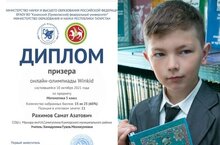 Ученик 5 класса Рахимов Самат принял участие и стал призером Олимпиады Winkid по математике, проводимой КФУ. Поздравляем!