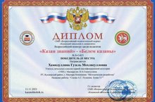 Рәсәйкүләм педагогик ңурнал "Казанский школьник и дошколята" укытучылар арасында үткәргән рәсәйкүләм "Белем казаны" конкурсында башлангыч сыйныф укытучысы Хамидуллина Гүзәл Мохлисулла кызы 2 урынны яулады.