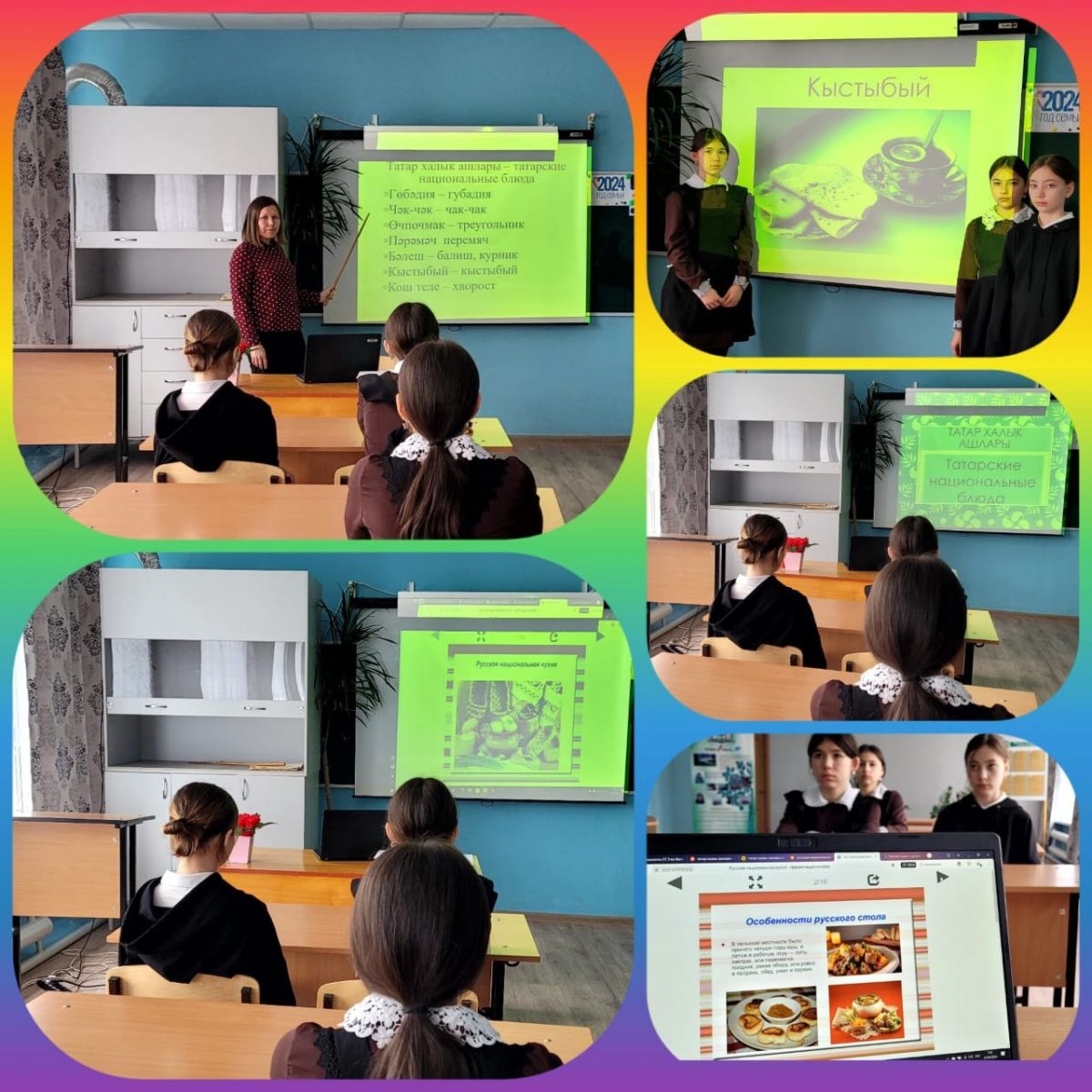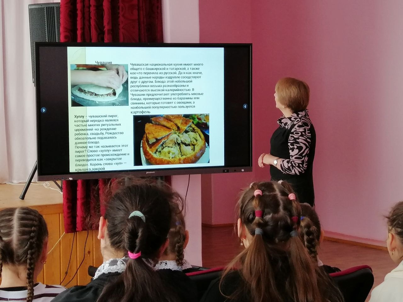 "Дөрес туклану традицияләре" марафоны кысаларында 1-4 сыйныф укучылары өчен "Россия буйлап сәяхәт. Төрле төбәкләрнең туклану традицияләре" темасы астында әңгәмә үткәрелде. 6нчы сыйныф укучылары белән "Россия буйлап сәяхәт. Кунакларны сыйлыйбыз" темасы буенча әңгәмә үткәрелде.