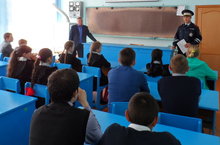 12 май көнне мәктәбебезгә ГИБДД җитәкчесе Фахрутдинов Ф. килде. Ул укучылар белән очрашты, җәйге чорда юлларда йорү кагыйдәләрен искә төшерде.