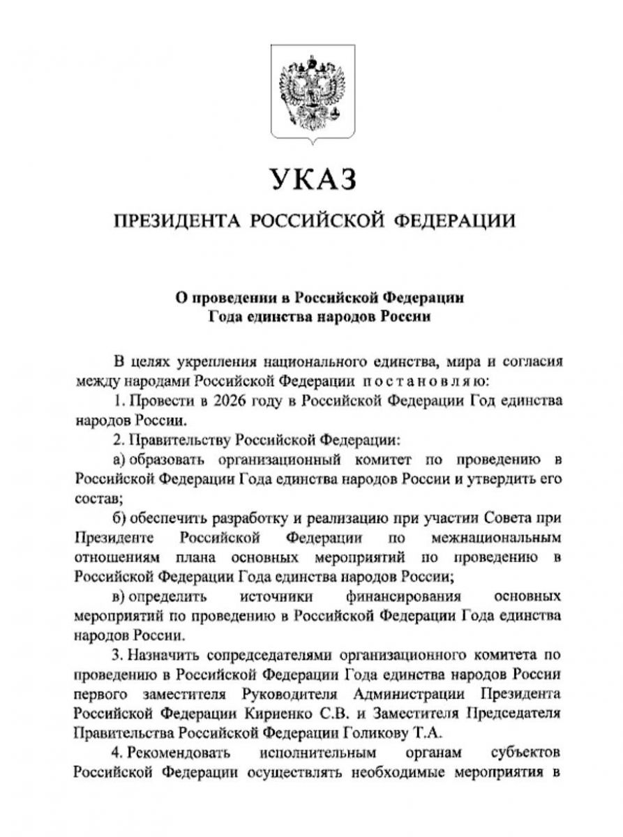 2026 год - ГОД ЕДИНСТВА НАРОДОВ РОССИИ