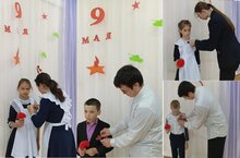 8 мая в нашем селе прошел митинг, посвященный празднику Победы. В нем приняли участие учащиеся нашей школы, ветераны тыла, учителя и гости. Ветеранам был по душе праздничный концерт с участием учащихся: красивые песни, задорные танцы, литературно-музыкальный монтаж. Праздник завершился возложением венка к памятнику павшим в Великой Отечественной войне и минутой молчания в память о них. / 8 май көнне безнең авылыбызда да Җиңү бәйрәменә багышланган митинг узды. Анда безнең мәктәп укучылары, тыл ветераннары, укытучылар һәм килгән кунаклар катнашты. Укучылар катнашында әзерләнгән бәйрәм концерты: матур җырлар, дәртле биюләр, әдәби-музыкаль монтаж ветераннарыбызның күңеленә бик хуш килде. Бәйрәм Бөек Ватан сугышында һәлак булганнар истәлегенә куелган һәйкәлгә венок салу һәм алар истәлегенә бер минут тынлык белән тәмамланды.